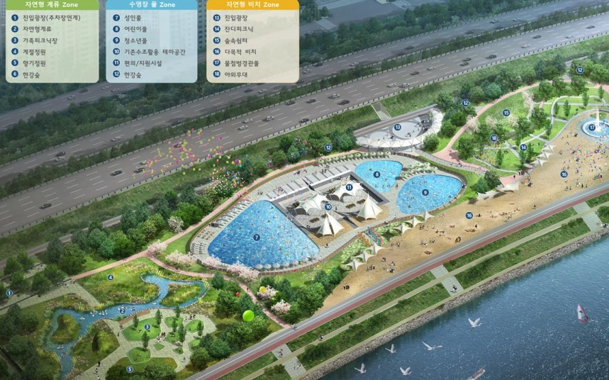 잠실 자연형 물놀이장은 올해 운영되는 한강수영장 중 유일하게 기존의 노후화된 잠실수영장을 사계절 이용이 가능하도록 새롭게 조정한 한강수영장입니다.